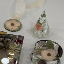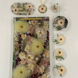 ![]() 8"x10" Frame $225-Choose from white, black, wood stain or a custom colour. -Customize with special fabric, pictures or keepsakes of all kinds. lots of creative room so feel free to ask anything you like. | ![]() Epoxy Picture Frame $325One of Quianns Favourites! Our epoxy resin frames are the perfect option when you want the durability of epoxy but not the sometimes bulky and heavy weight. *Pictured is our 4x6 picture slot frame, however larger sizes are available to order. Please inquire if you're interested. *Add-on rate $275 | ![]() 5pc Coaster Set $225Our pressed flower coasters come in a squares (pictured) or round display. Please visit our gallery to choose your favourite prior to booking. *add-on rate $175 |
